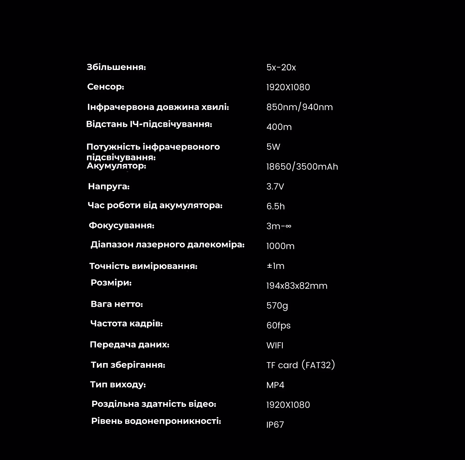 Лазерний Далекомір та Балістичний Калькулятор: Інтегрований лазерний далекомір дозволяє точно вимірювати відстань до 800 метрів з похибкою ±1 метр. В поєднанні з вбудованим балістичним калькулятором це забезпечує неперевершену точність прицілювання та попадання, роблячи нічну стрільбу максимально ефективною.