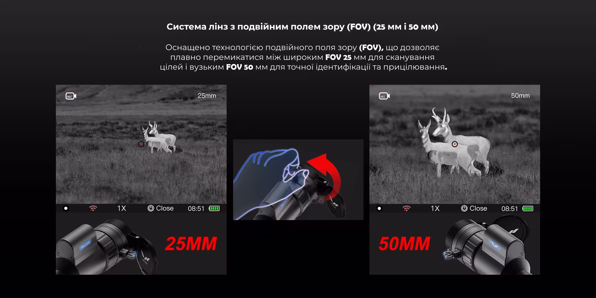 Широка дальність виявлення: Виявляйте цілі на відстані до 2600 метрів завдяки 50-мм германієвій лінзі.