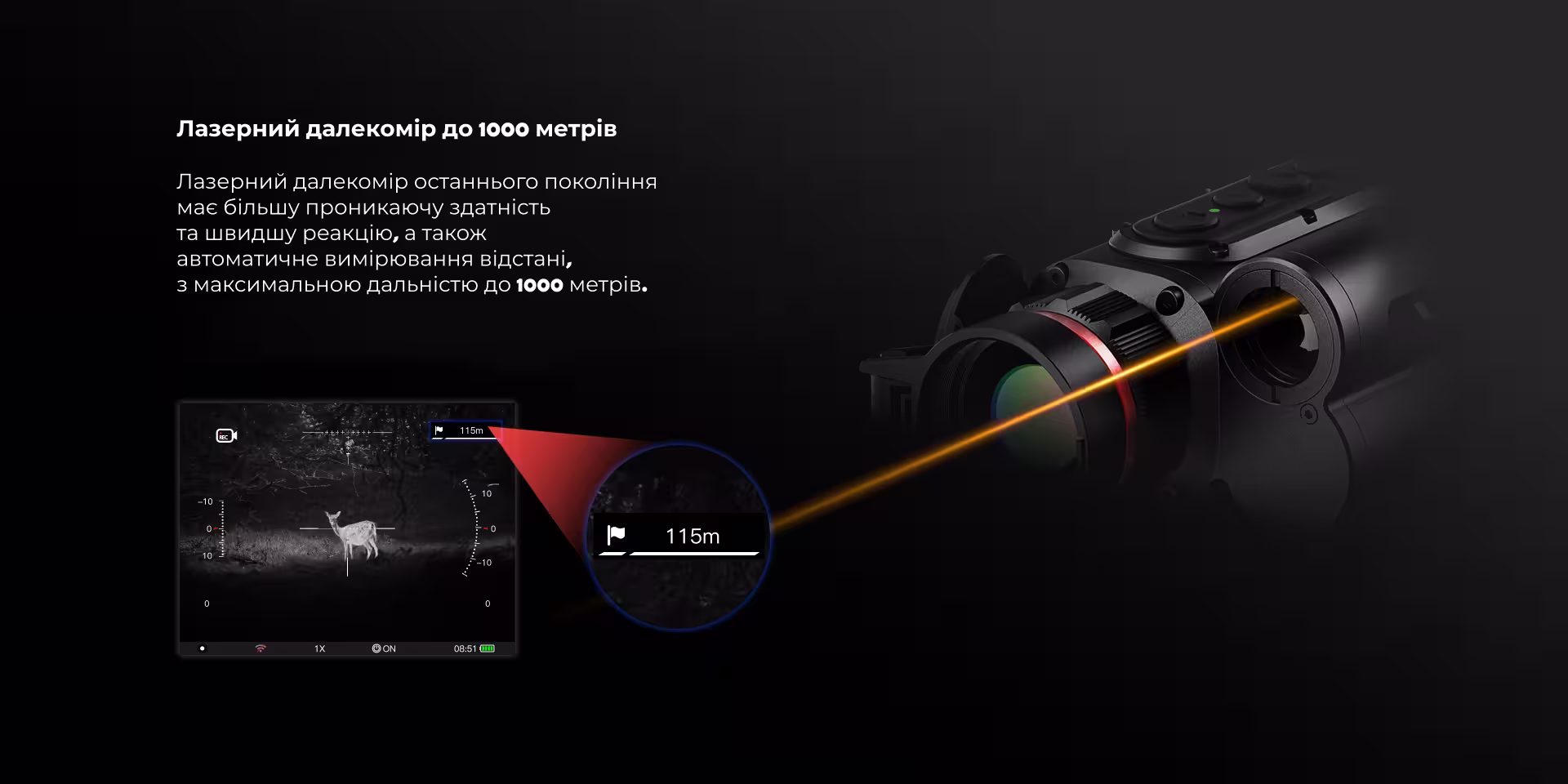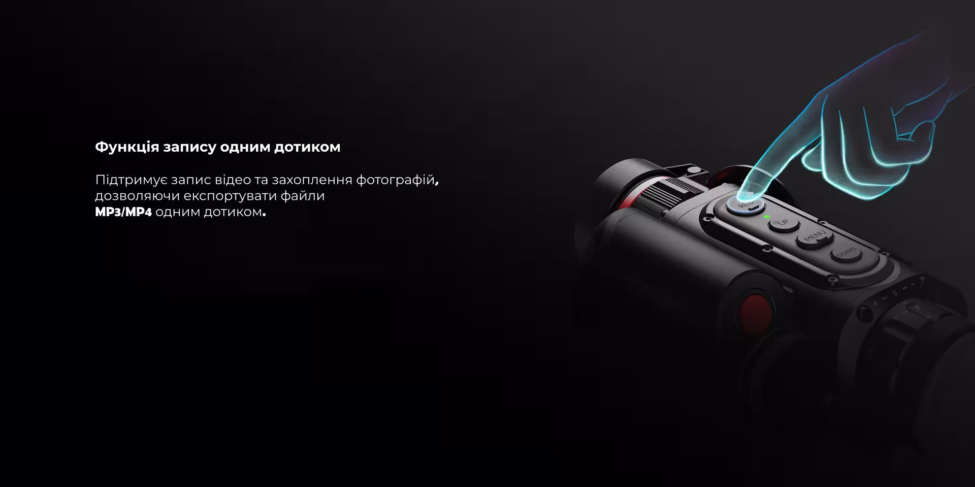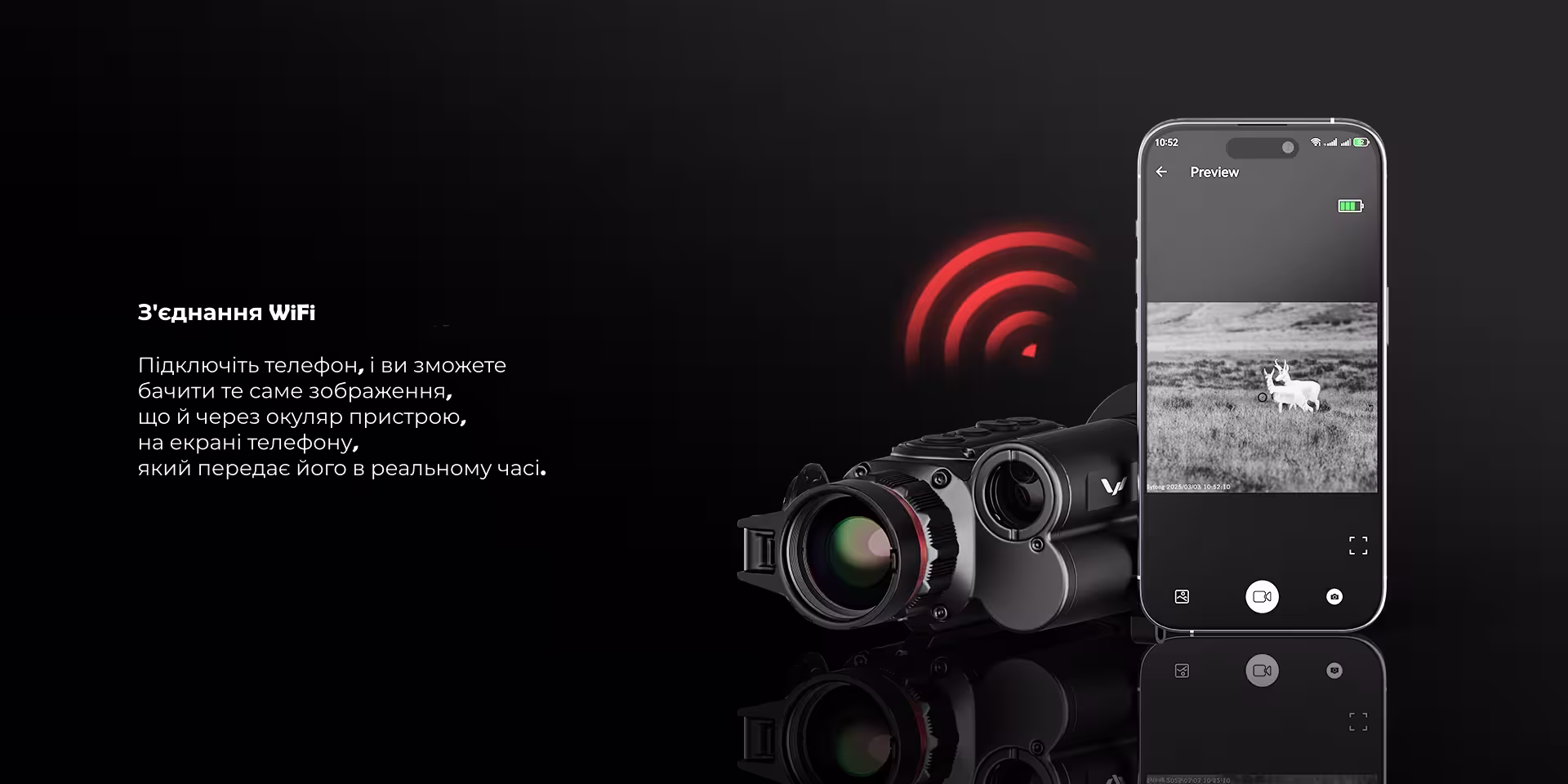 Запис та Зв'язок: Записуйте відео та фото. Вбудований Wi-Fi модуль дозволяє швидко передавати файли та дистанційно керувати функціями приладу через мобільний додаток.
