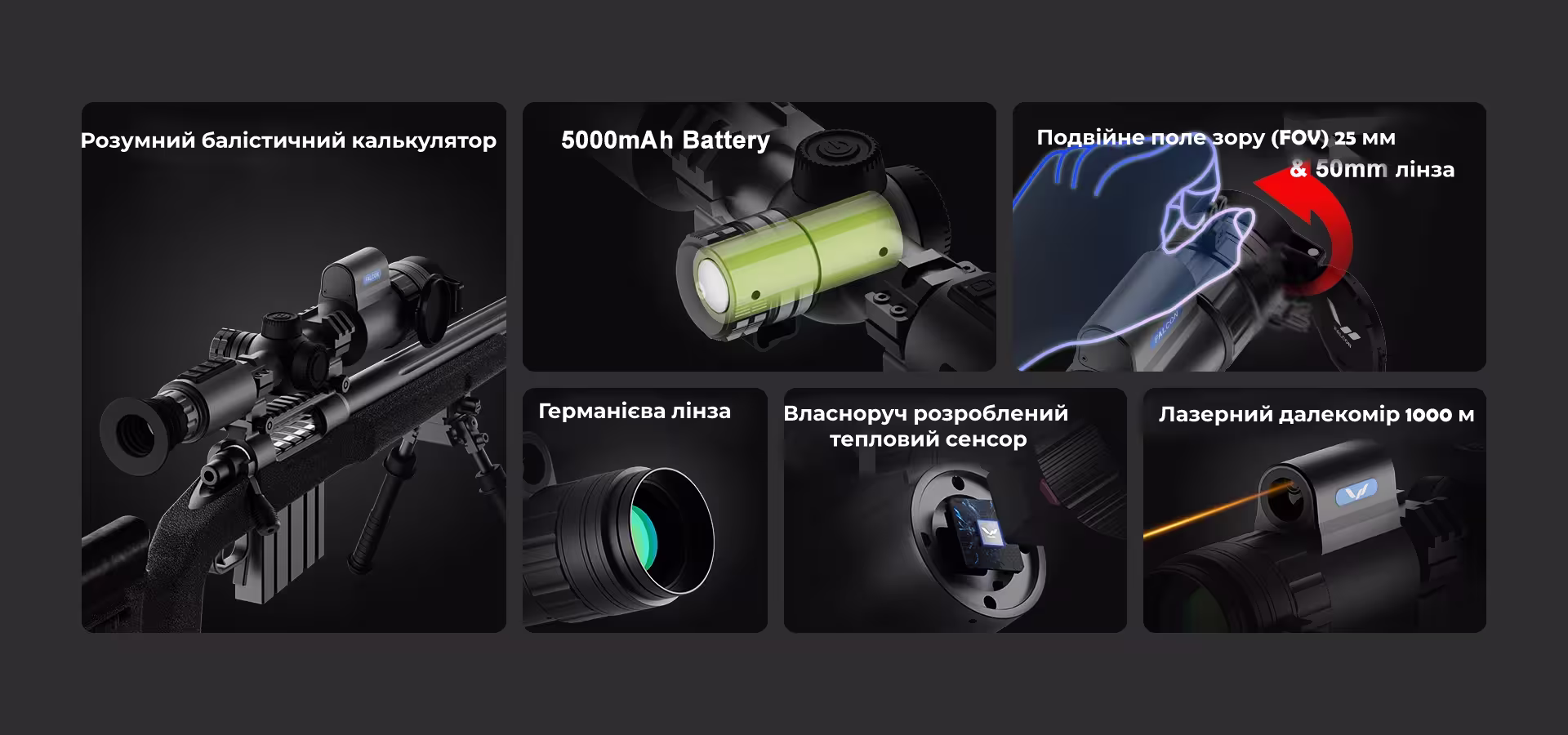 Широка дальність виявлення: Виявляйте цілі на відстані до 2600 метрів завдяки 50-мм германієвій лінзі.