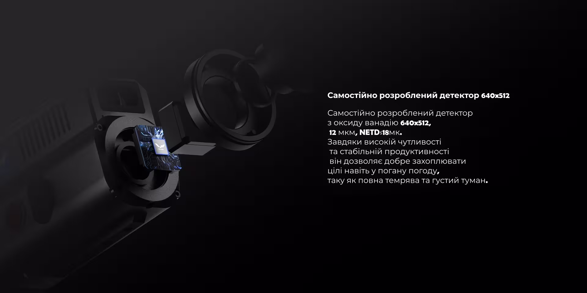 Винятковий Сенсор: Оснащений неохолоджуваним VOx-сенсором 640x512 з кроком пікселя 12 мкм та надзвичайно низьким NETD до <18 мК. Це забезпечує виняткову чутливість та кришталево чисте зображення навіть у повній темряві, тумані або при складних погодних умовах.